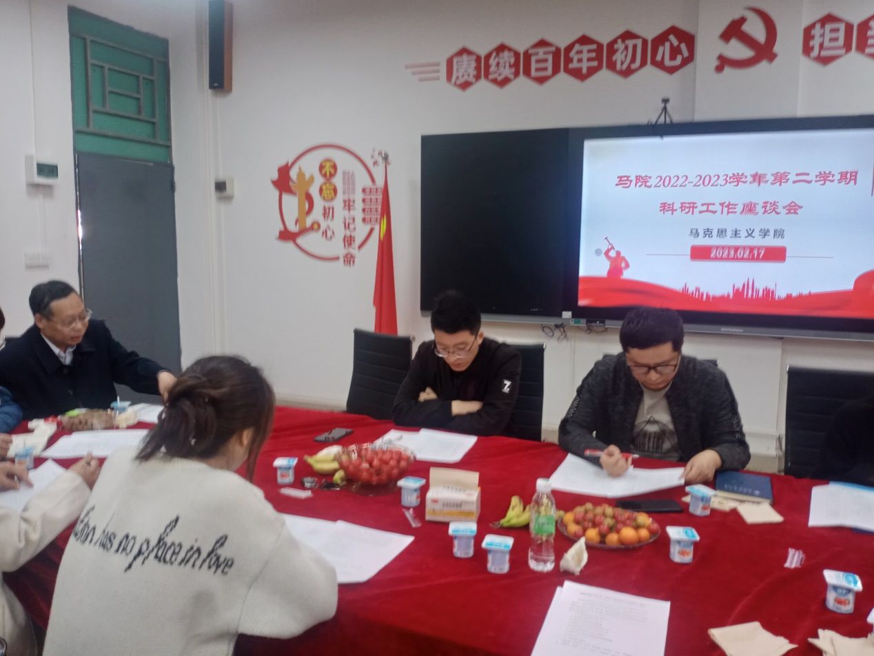 参加会议的马院院长李佩琼教授做出重要指示,2022-2023年第二学期马院科指委工作需要加强部署,号召全院老师努力在科研工作上下大功夫见成效,要求科研骨干发挥带头作用,在接下来工作过程中精益求精取得优异成果。与会参加吴霞教授、魏林林老师以及在过去一年取得科研成果的优秀教师和大家分享自己科研工作心路历程,为马院科研工作建设提出诸多宝贵意见。