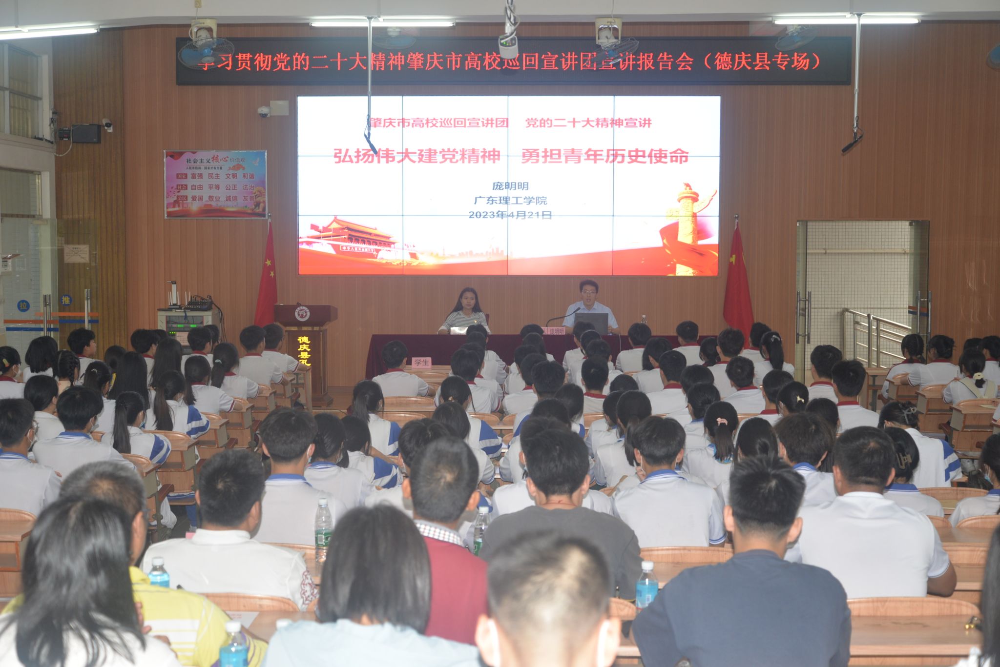 根据中共肇庆市委教育工委《关于组织肇庆市高校巡回宣讲团开展党的二十大精神宣讲的通知》要求,2023年4月21日,肇庆市高校巡回宣讲团成员、永利yl23411庞明明老师应德庆县教育局邀请,赴德庆县孔子学校开展党的二十大精神宣讲,德庆县教育局党委办公室有关领导、德庆县巡回宣讲团全体成员、孔子学校部分师生代表共计180余人参加了宣讲会。宣讲会由德庆县教育局党委办公室四级主任科员冯之欣主持。