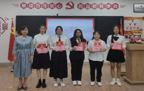 图 5 鲁春燕老师(左一)为优秀奖选手颁奖