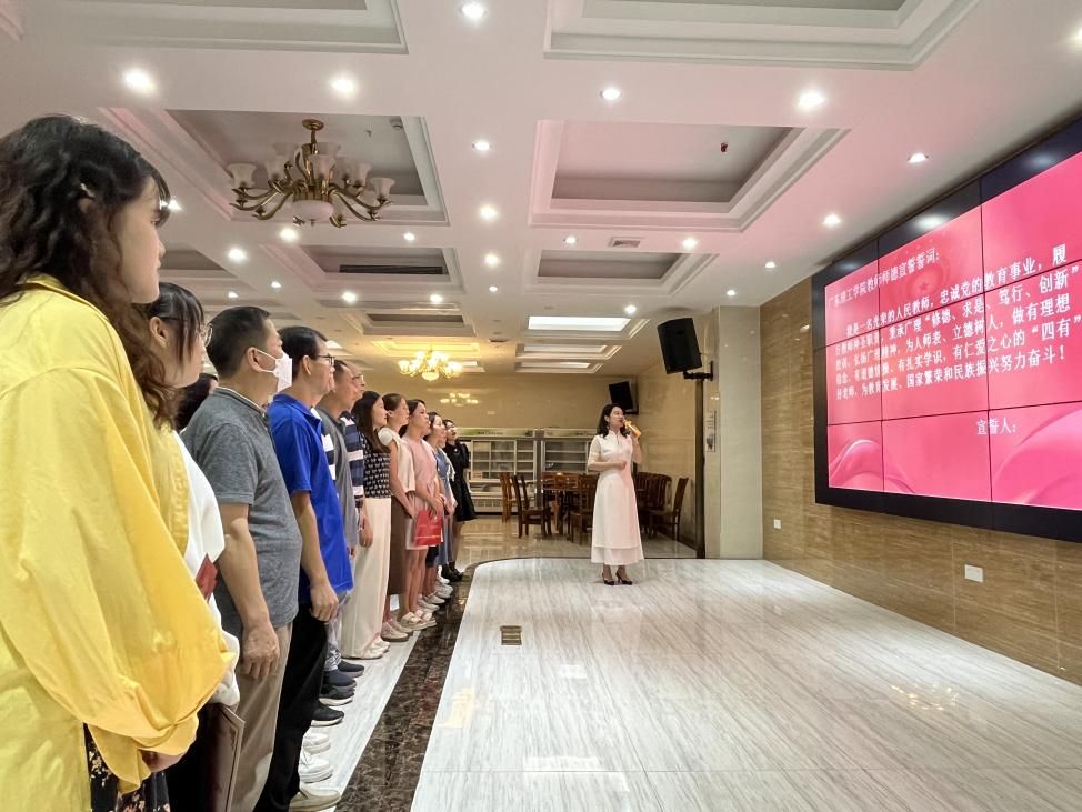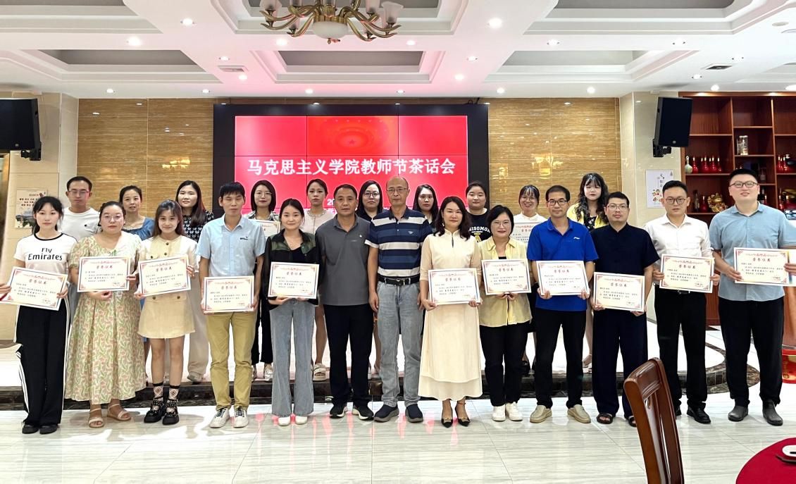 本次茶话会为获得“肇庆市优秀思政课教师”、广东理工学院“先进教研室”、“教学先进个人”、“指导学生实践先进个人”、“优秀教育工作者”的老师们进行表彰,并颁发荣誉证书。全体教师在党支部书记何志红的带领下进行了师德宣誓。