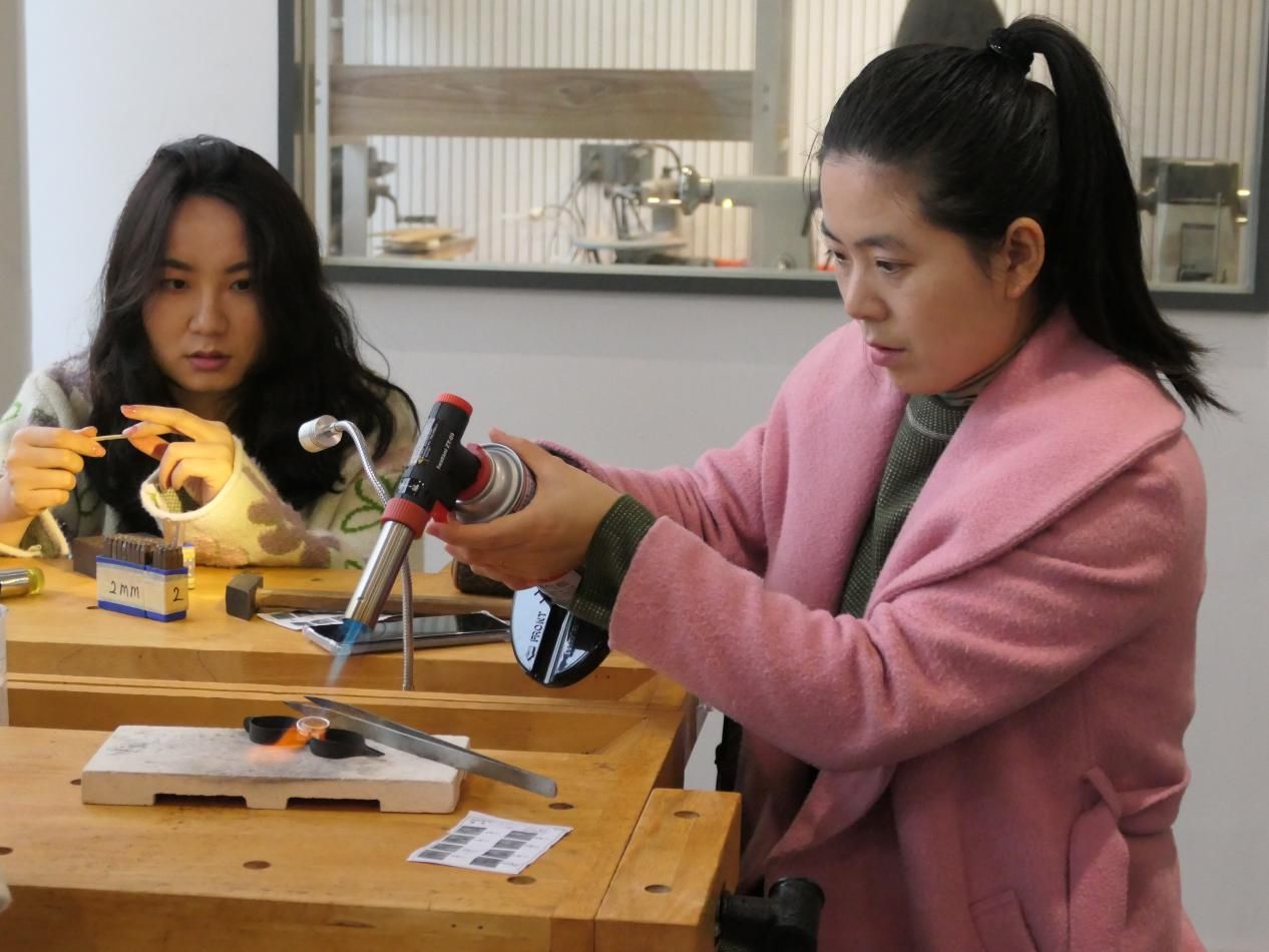 在制作沙画蜡烛的环节中,教师们纷纷拿起画笔,在透明的蜡烛表面绘制出各种美丽的图案。有的绘制了山水画卷,有的描绘了花鸟鱼虫,每一幅沙画都充满了创意与想象。而在手工戒指的制作环节,参与者们则通过切割、打磨、镶嵌等步骤,亲手打造出了一枚枚别致的戒指。每一枚戒指都凝聚了大家的汗水与智慧,也见证了传统手工艺的魅力与传承。