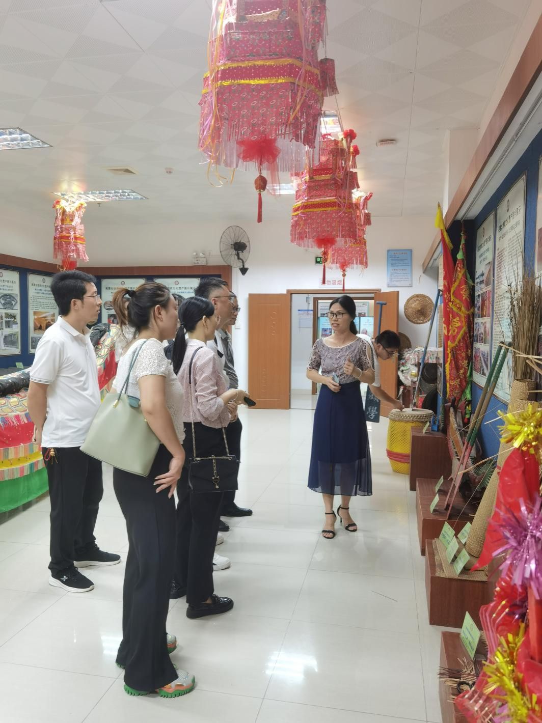 交流活动伊始,高要区文化馆办公室主任苏凤玲亲带领大家参观了高要区非遗文化展览馆。展览馆内陈列着《金度花席编织技艺》、《加冠命字》、《庆灯》、《高要龙舞》、《宋隆茶果节》等多个国家级非遗项目的实物,充分展示了高要区丰富的非遗文化资源和深厚的文化底蕴。在参观《高要春社》和《金利赛龙舟》专题图片展时,苏主任详细讲解了这些非遗文化背后的内涵及其在高要区文化发展中的重要地位。