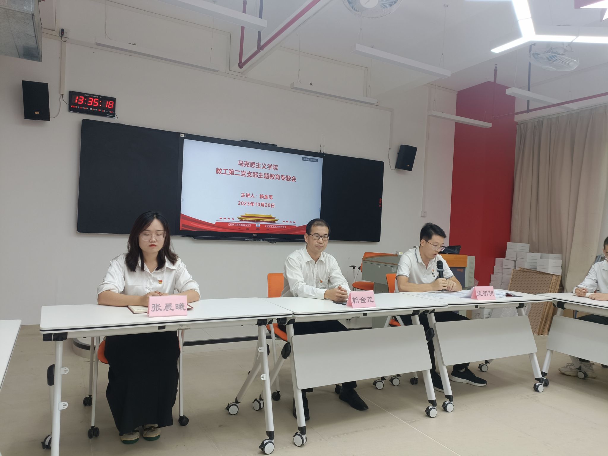 为深入学习贯彻习近平总书记关于第二批主题教育的重要指示精神,推动学习习近平新时代中国特色社会主义思想走深走实,2023年10月20日下午,永利yl23411教工第二党支部在鼎湖校区实训楼301VR实验室顺利召开学习贯彻习近平新时代中国特色社会主义思想主题教育专题学习会,教工第二党支部全体党员参加了会议,会议由支部组织委员庞明明同志主持。