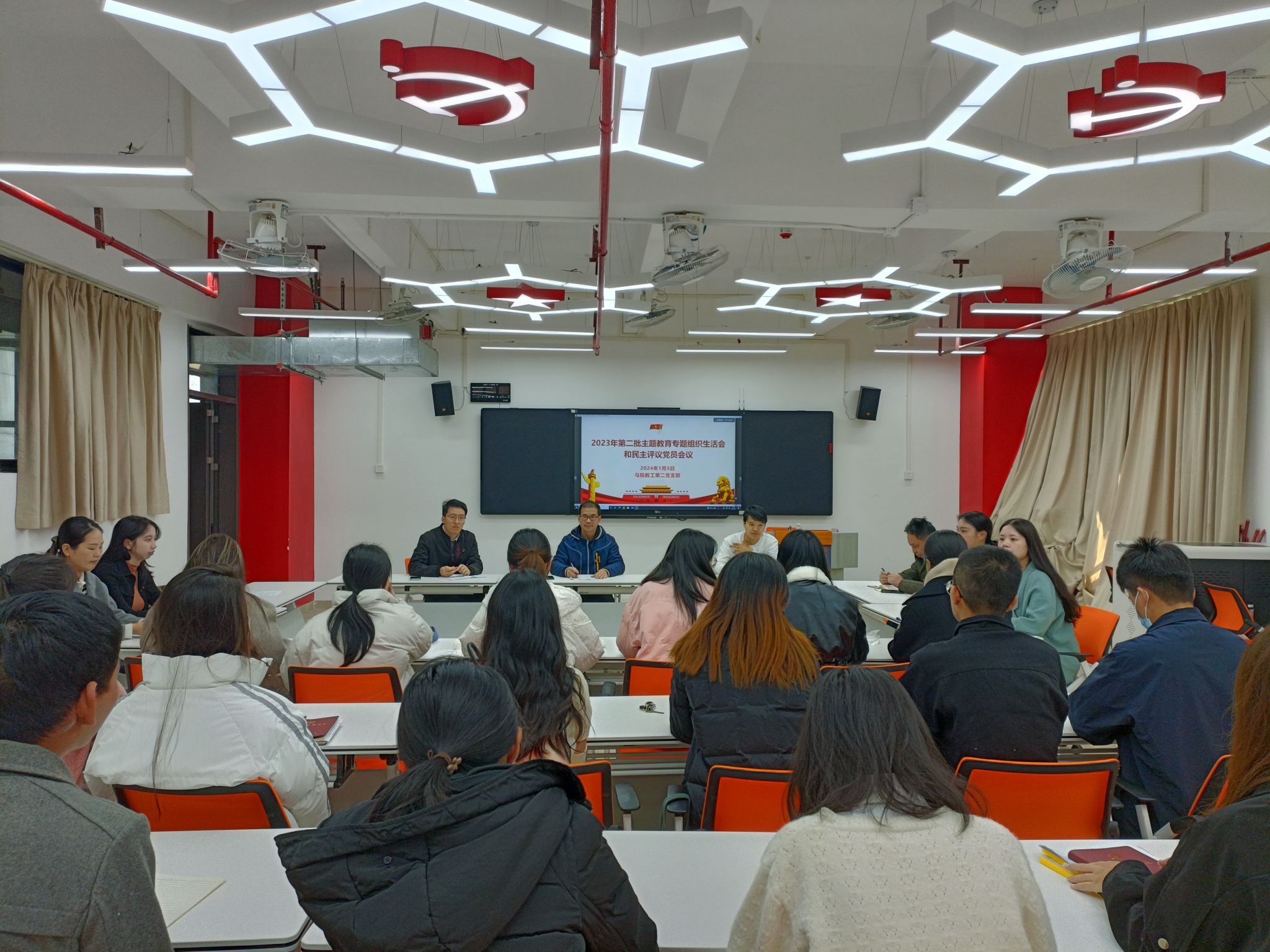根据学校党委和学院党总支工作部署,2024年1月5日上午,永利yl23411教工第二党支部在鼎湖校区实训楼301VR实验室召开关于学习贯彻习近平新时代中国特色社会主义思想主题教育专题组织生活会和民主评议党员的会议,支部全体党员参加了此次会议,会议由党支部书记赖金茂同志主持。
