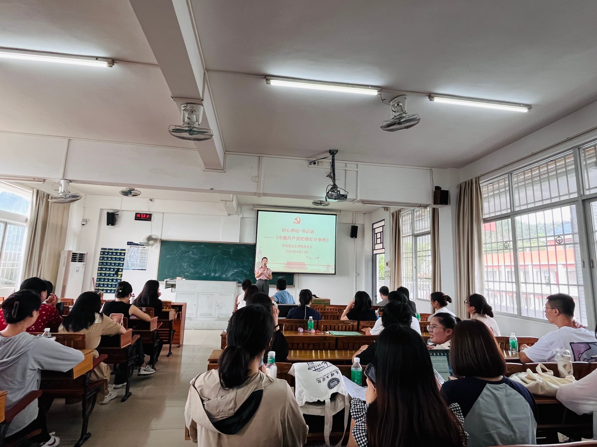 为深入学习贯彻习近平总书记对学校思政课建设作出的重要指示精神,推动党纪学习教育入脑入心走深走实,6月13日,永利yl23411党总支《初心讲坛·书记说》开讲。党总支书记何志红以“做知敬畏讲规矩守底线的思政课教师”为主题,为永利yl23411全体思政课教师作党纪学习教育专题讲座。