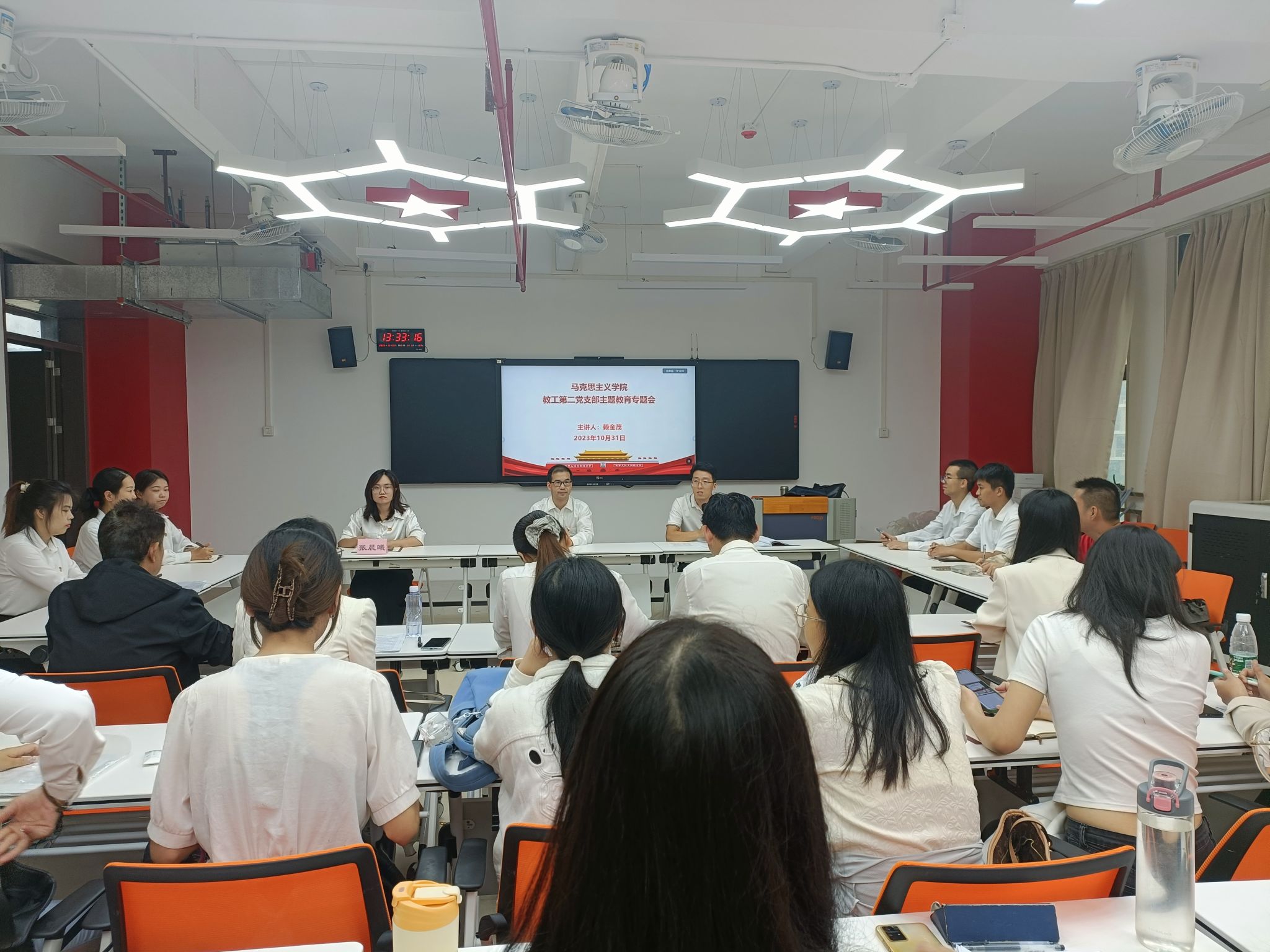 为深入学习贯彻习近平总书记关于第二批主题教育的重要指示精神,推动学习贯彻习近平新时代中国特色社会主义思想主题教育走深走实,2023年10月31日下午,永利yl23411教工第二党支部在鼎湖校区实训楼301VR实验室顺利召开学习贯彻习近平新时代中国特色社会主义思想主题教育专题学习会,教工第二党支部全体党员参加了会议,会议由支部委员庞明明同志主持。